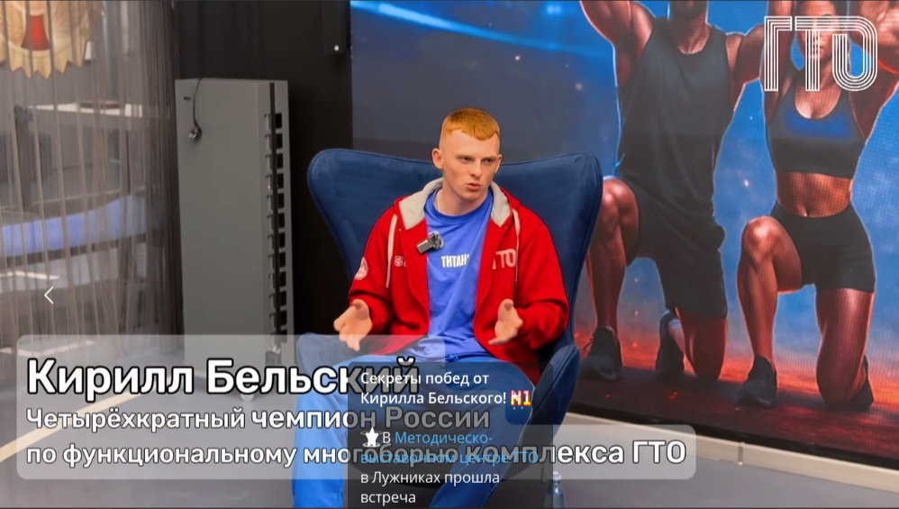 ⭐В Методическо-выставочном центре ГТО (https://t.me/mvc_gto) в Лужниках прошла встреча четырехкратного чемпиона России по многофункциональному многоборью комплекса ГТО, участника популярного шоу «Титаны» Кирилла Бельского (https://t.me/kirillbelsku) со студентами Московского государственного университета спорта и туризма. (https://t.me/mgusit)